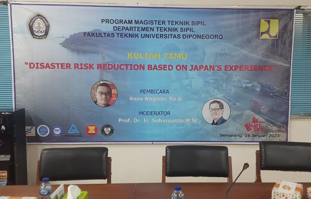 Semarang – Jawa Tengah (26/1). Magister Teknik Sipil menyelenggarakan Kuliah Tamu dengan tema “Disaster Risk Reduction based on Japan’s Experience” dengan pembicara Kozo Nagami, Ph.D dari Tohoku University, Jepang. Mr. Nagami juga merupakan anggota senior Badan Kerjasama Internasional Jepang atau JICA (Japan’s Intenational Cooperation Agency) yang sudah berpengalaman selama 28 tahun dalam membantu negara-negara berkembang khususnya dibidang pemulihan setelah terjadinya bencana. Beliau termasuk yang terlibat langsung dalam bantuan penanganan pasca bencana tsunami di Aceh pada tahun 2004.