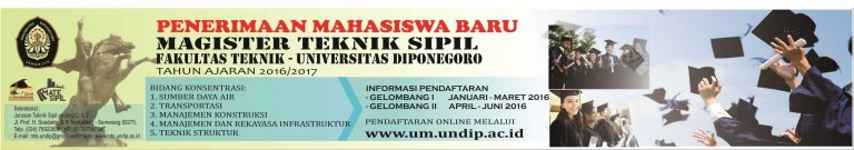 s2sipilsandbox.undip.ac.id, Mulai Bulan Januari kemarin Program Studi Magister Teknik Sipil sudah membuka Penerimaan Mahasiswa Baru Tahun ajaran 2016/2017. untuk info saja bahwa pendaftaran mahasiswa baru untuk gelombang pertama telah dibuka mulai bulan Januari kemarin sampai dengan bulan Maret 2016 ini makanya segera daftar ya sebelum di tutup. Tapi bagi yang belum sempat daftar jangan kuatir, pendaftaran akan dibuka kembali pada gelombang ke-dua yaitu pada bulan April sampai dengan bulan Juni 2016, segera persiapkan semuanya untuk bergabung bersama kami. Bagi calon mahasiswa yang bingung cara pendaftarannya, gampang sekali silahkan klik atau masuk pada web resmi ujian mandiri undip yaitu um.undip.ac.id. silahkan ikuti petunjuk sesuai yang ada di web tersebut. Untuk Bidang Konsentrasi, Program Studi Magister Teknik Sipil membuka 5 Bidang yaitu :